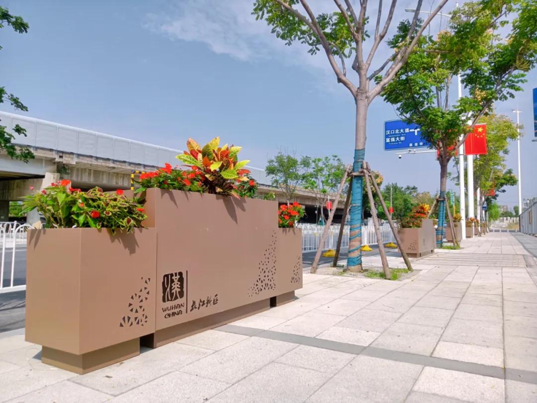 在長(zhǎng)江新區(qū)的主干道上,一排排整齊的花箱內(nèi)栽滿(mǎn)了盛開(kāi)的花卉,色彩斑斕,令人賞心悅目。特別是在新區(qū)的標(biāo)志性建筑前,精心設(shè)計(jì)的花壇更是吸引了眾多市民駐足觀賞。